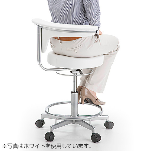 リビングの椅子が壊れてしまい急遽一つ買って良かったので、計4つかいました。今や全部この椅子になってしまいました。タイヤも5個で安定感もあり、滑り落ちたりしないです。背もたれ兼肘掛けで無駄に面積がなくて良い。浅い背もたれだと後ろに倒れてしまうことがありますが、この椅子はその心配は無し。お医者さんがよく使われていると言う事なので、リビングではこの椅子のまま後ろの棚のものを取ったり、、と何かと便利です。高さ調整も楽にできます。