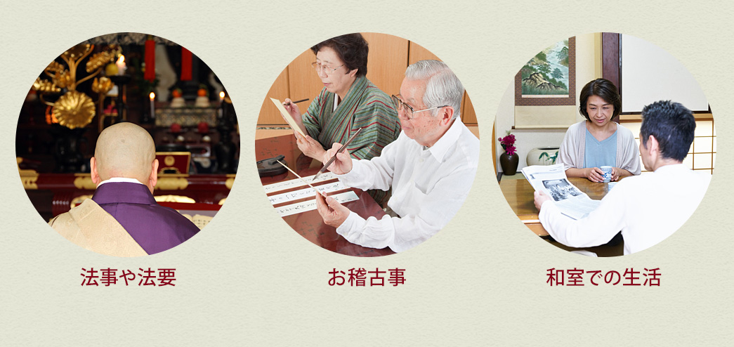 木製フレームは、落ち着いたブラウンで統一したシックなデザインです。法事などの慶弔行事やお稽古ごと、和室で過ごすときなど様々な場面で、さりげなく使えます。