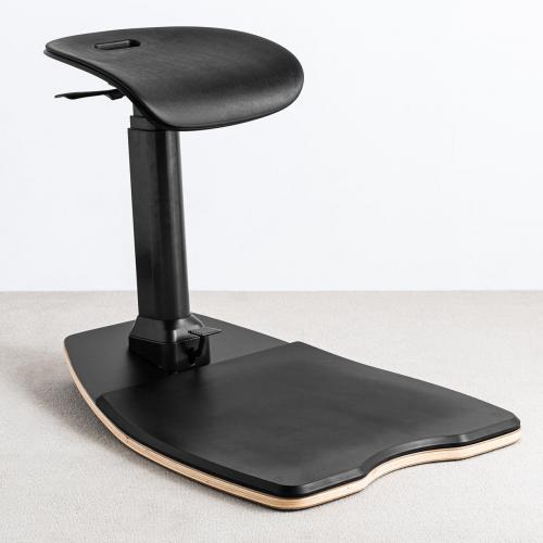 昇降範囲が非常に広く、1番下げれば背もたれなしの椅子として、少しあげてお尻を軽く乗せれば立ち椅子として、1番上まで高くすれば背当てとして使うことが出来ます。無段階の高さ調整なので、体格を気にせず最適な高さに調整できます。
