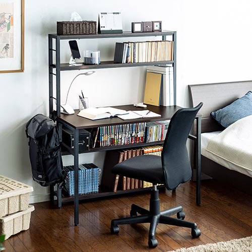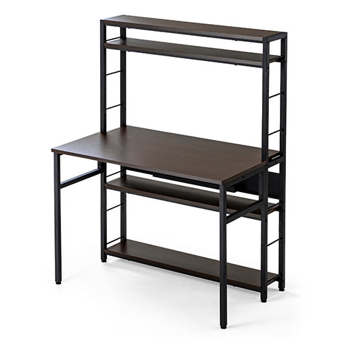 足元にも2段の収納棚があり、パソコンや周辺機器、書類などを収納できます。