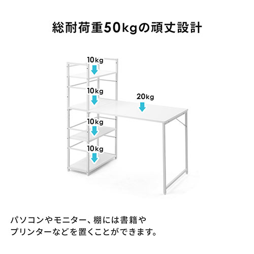 部屋に合わせやすいシンプルな見た目のシェルフデスク。